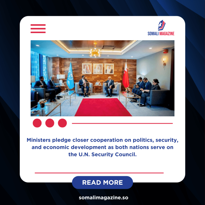 Bahrain’s Foreign Minister, Dr. Abdullatif bin Rashid Al Zayani, met with Somali Foreign Minister Abdisalam Abdi Ali on Tuesday during the 80th session of the United Nations General Assembly in New York. The meeting, held at Bahrain’s Permanent Mission to the U.N., focused on ways to strengthen the relationship between the two countries and explore areas of cooperation that could benefit both sides.