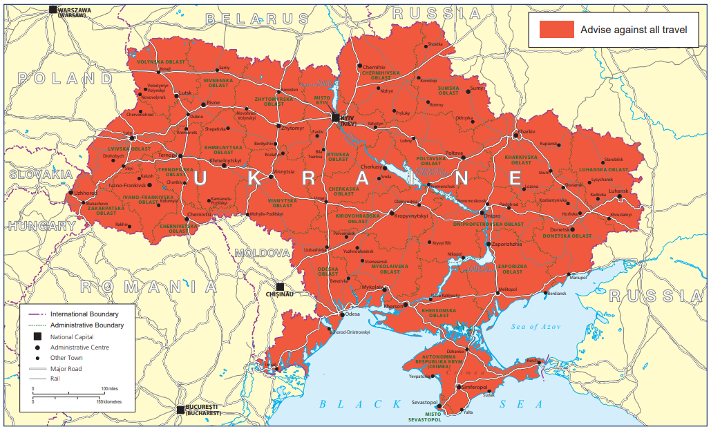 What is the UK travel advice for Ukraine?