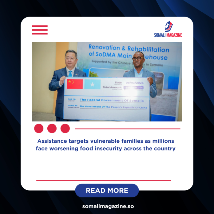 Chinese Ambassador Wang Yu presented the support package to Mahmoud Moalim Abdulle, the commissioner of the Somali National Disaster Management Authority (SoDMA). The donation comes at a time when Somalia is facing a worsening humanitarian crisis caused by prolonged dry conditions, rising food insecurity and limited international funding.