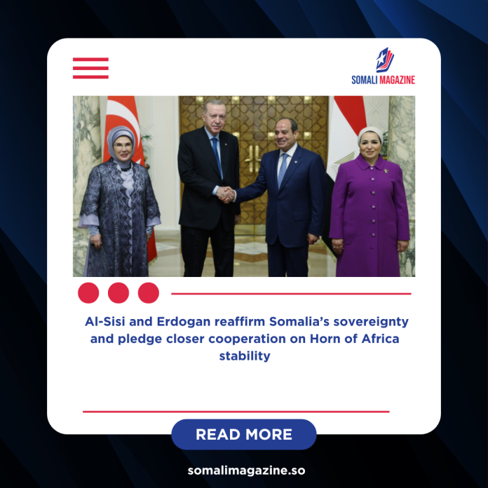 Egyptian President Abdel Fattah al-Sisi and Turkish President Recep Tayyip Erdogan have jointly reaffirmed their strong support for Somalia’s sovereignty and territorial integrity, firmly rejecting Israel’s recent decision to recognize Somaliland. The two leaders made their position clear during a high-level meeting held in Cairo on Wednesday, where they discussed bilateral ties as well as key regional and international issues affecting Africa and the Middle East.