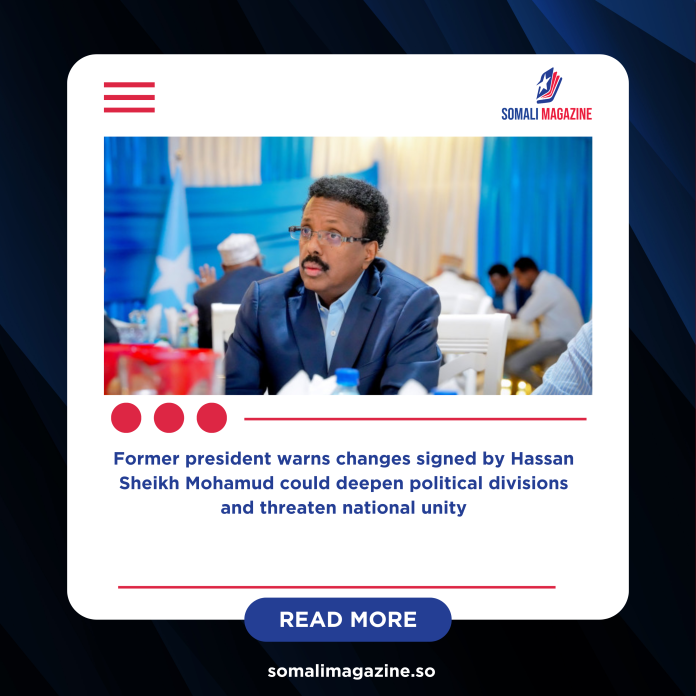 Former Somali President Mohamed Abdullahi Farmaajo has strongly criticized the decision by President Hassan Sheikh Mohamud to sign Somalia’s revised federal constitution into law, warning that the move could threaten national unity and increase political tensions in the country.