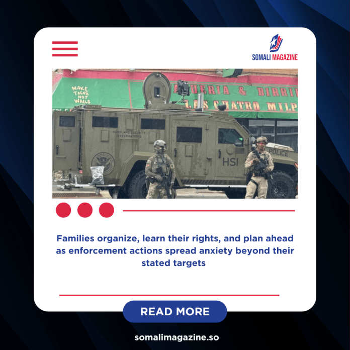 Federal immigration raids across Minnesota have left many Somali families living in fear and uncertainty. In neighborhoods such as Cedar-Riverside in Minneapolis, along Lake Street, and in Rochester, parents are preparing for the possibility that a loved one could be detained without warning. Families are teaching children not to open the door to strangers, keeping important phone numbers close, and organizing key documents so they are ready if something happens.