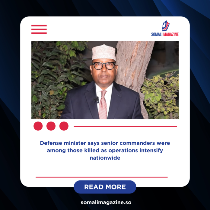 Defense Minister Ahmed Moallim Fiqi said the offensive focused mainly on the Jabad Godane area and surrounding locations, which he described as one of Al-Shabab’s most important strongholds in central Somalia. He confirmed that those killed included six senior commanders, dealing a significant blow to the group’s leadership structure in the region.