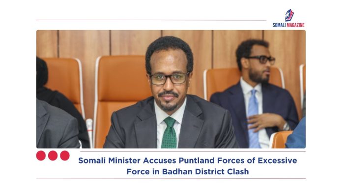 A Somali federal minister has accused Puntland security forces of using excessive force during recent clashes in the Badhan district, escalating tensions in a region already marked by complex territorial and political disputes. The allegations come amid conflicting accounts from local authorities and ongoing uncertainty about the scale of the incident.