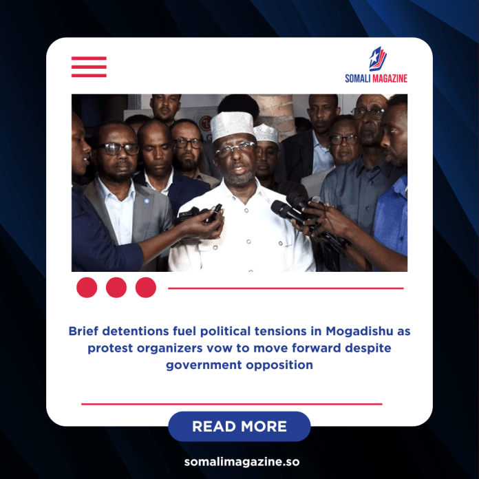 Subheadline: Brief detentions fuel political tensions in Mogadishu as protest organizers vow to move forward despite government opposition