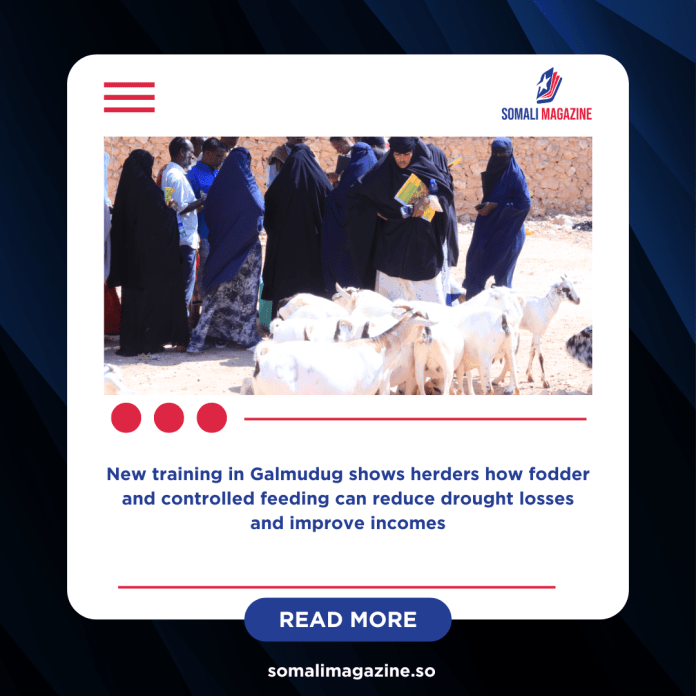 Somali pastoralists are increasingly embracing modern livestock practices as they look for better ways to protect their animals, increase productivity, and earn more reliable incomes. In Galmudug’s Adado district, herders are learning how feedlots and cultivated fodder can help them move beyond dependence on open grazing, which has become more unpredictable due to frequent droughts and climate shocks.