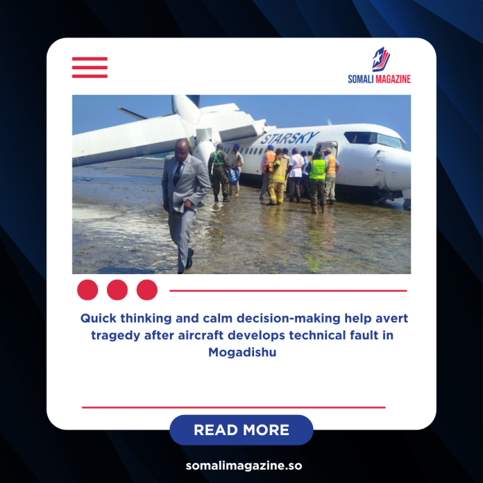 The aircraft, a Fokker 50 operated by Starsky Aviation, took off from Aden Adde International Airport on Tuesday morning. Not long after departure, the crew detected a technical fault. Realizing the seriousness of the situation, they immediately contacted air traffic control and requested permission to return to the airport.
