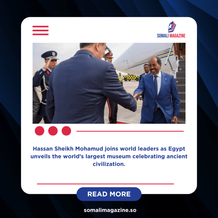 Somali President Hassan Sheikh Mohamud joined world leaders on Saturday for the grand opening of Egypt’s new Grand Egyptian Museum — the largest archaeological museum ever built to celebrate a single civilization. The event, held at the foot of the Giza Plateau, was inaugurated by Egyptian President Abdel Fattah el-Sisi and attended by delegations from 79 countries, including 39 led by kings, princes, and heads of state and government.