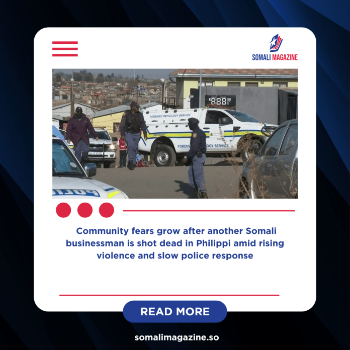 South African bandits shot and killed a Somali businessman, Mahmoud Abdi Osman, in the Philippi area of Cape Town on Friday night. According to community members, Osman was attacked inside his small shop by armed men who entered suddenly and opened fire. He died at the scene before any help could arrive. Residents say the incident has once again highlighted the growing danger faced by Somali traders working in South Africa, especially in neighborhoods like Philippi that have become known for frequent crime and repeated attacks on foreign-owned shops.