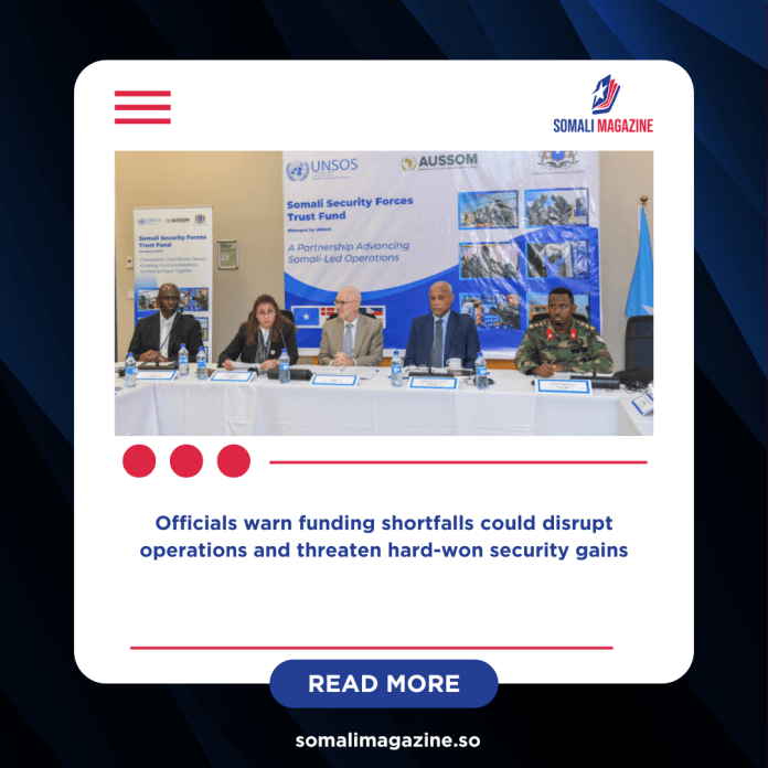 The appeal was made during a Somali Security Forces Trust Fund event held in Mogadishu, where Somali and international officials gathered to discuss the growing financial needs required to keep security operations running. The meeting brought together Somalia’s National Security Advisor, senior representatives from AUSSOM and UNSOS, ambassadors, and members of the diplomatic community. Senior officials from the Somali National Armed Forces, the Somali Police Force, the Ministry of Defence, the Ministry of Internal Security, and the Office of National Security also took part.