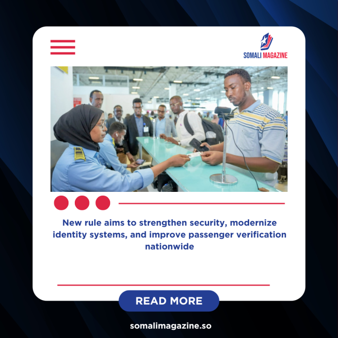 Somalia’s federal government has officially started enforcing a new rule that requires all passengers traveling on domestic flights to present a National Identity Card. The measure took effect on March 1 after being postponed for two months to give more citizens time to register and receive their cards. Officials say the move is aimed at strengthening security and improving how passenger information is managed across the country.