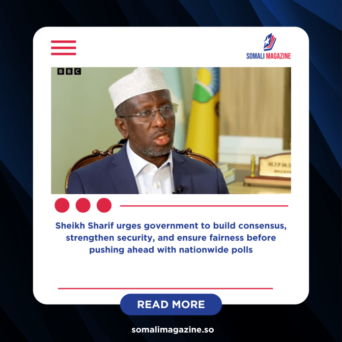 Former Somali President Sheikh Sharif Sheikh Ahmed has warned that Somalia is still not ready to hold a genuine one-person, one-vote election, saying the push for such a system does not match the realities the country is currently facing. In an interview with the BBC Somali Service, he said that although the idea of direct elections is popular, the conditions required to make it possible have not yet been put in place.