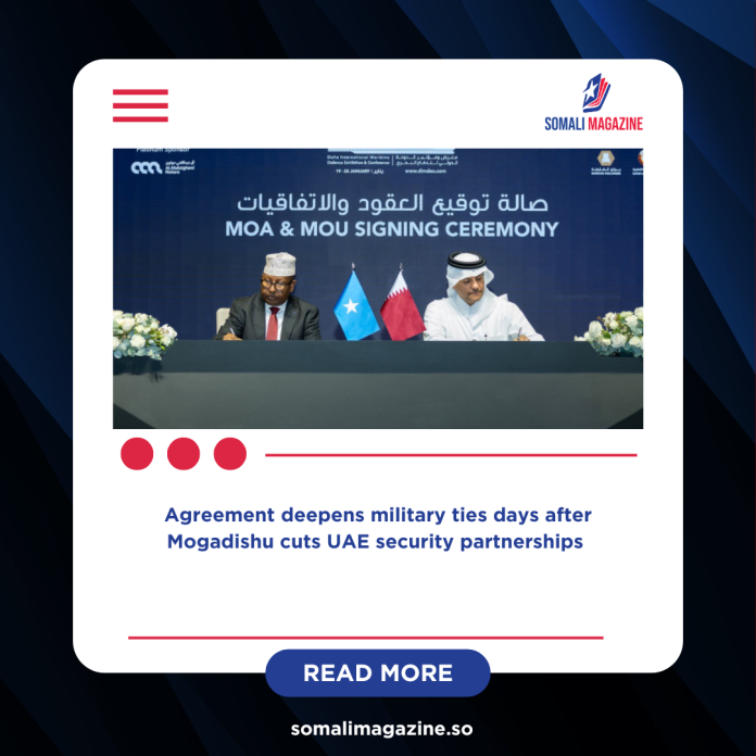 Somalia and Qatar have signed a new defense cooperation agreement aimed at strengthening military ties and expanding security collaboration between the two countries. The agreement was signed on Monday in Doha by Somalia’s Minister of Defense, Ahmed Moallim Fiqi, and Qatar’s Deputy Prime Minister and Minister of State for Defense Affairs, Sheikh Saoud bin Abdulrahman bin Hassan Al Thani. Officials from both governments confirmed the signing, describing it as a key step toward deeper long-term cooperation in defense and security matters.