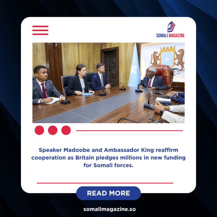 The meeting between Speaker Madoobe and Ambassador King highlighted the close ties between Somalia and the UK, built on years of cooperation and shared goals. It also marked an important step in ensuring that Somalia receives the support it needs to complete its constitution, build stronger institutions, and deliver democratic elections that reflect the will of its people. Both leaders stressed that the challenges Somalia faces require joint effort, commitment, and trust, and that together, Somalia and the UK can move closer to achieving a more secure and prosperous future for the Somali people.