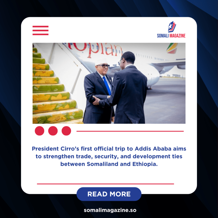 President Cirro’s visit to Addis Ababa represents a significant diplomatic engagement aimed at reinforcing Somaliland’s regional ties and advancing cooperation with one of its closest allies. It is also a signal of the shifting political landscape in the Horn of Africa, where regional partnerships continue to play a vital role in shaping peace and development.